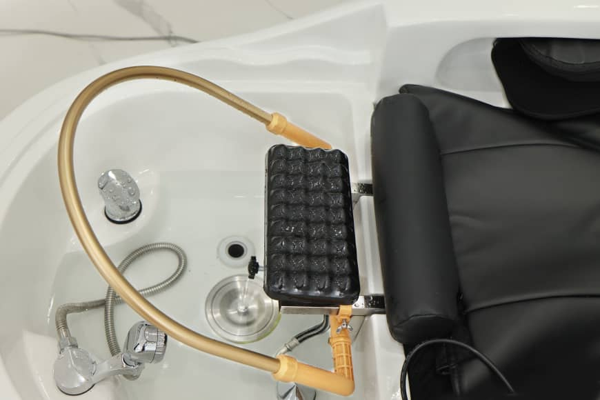 -  Bedienfeld zur Einstellung der Wassertemperatur im Spülbecken (Heiz- und Filterwasserpumpe). Dadurch kann während der Behandlung eine konstante Temperatur aufrechterhalten werden.