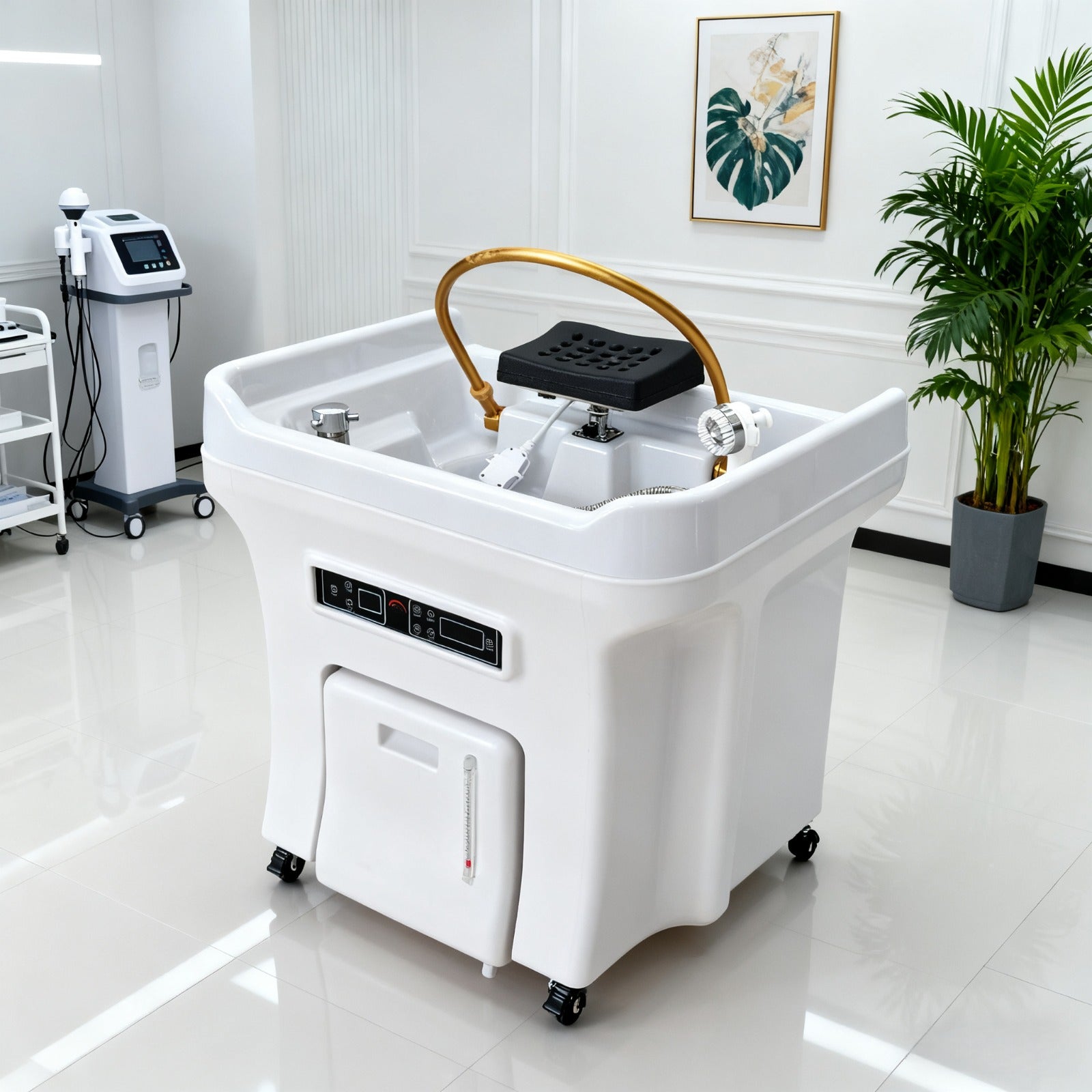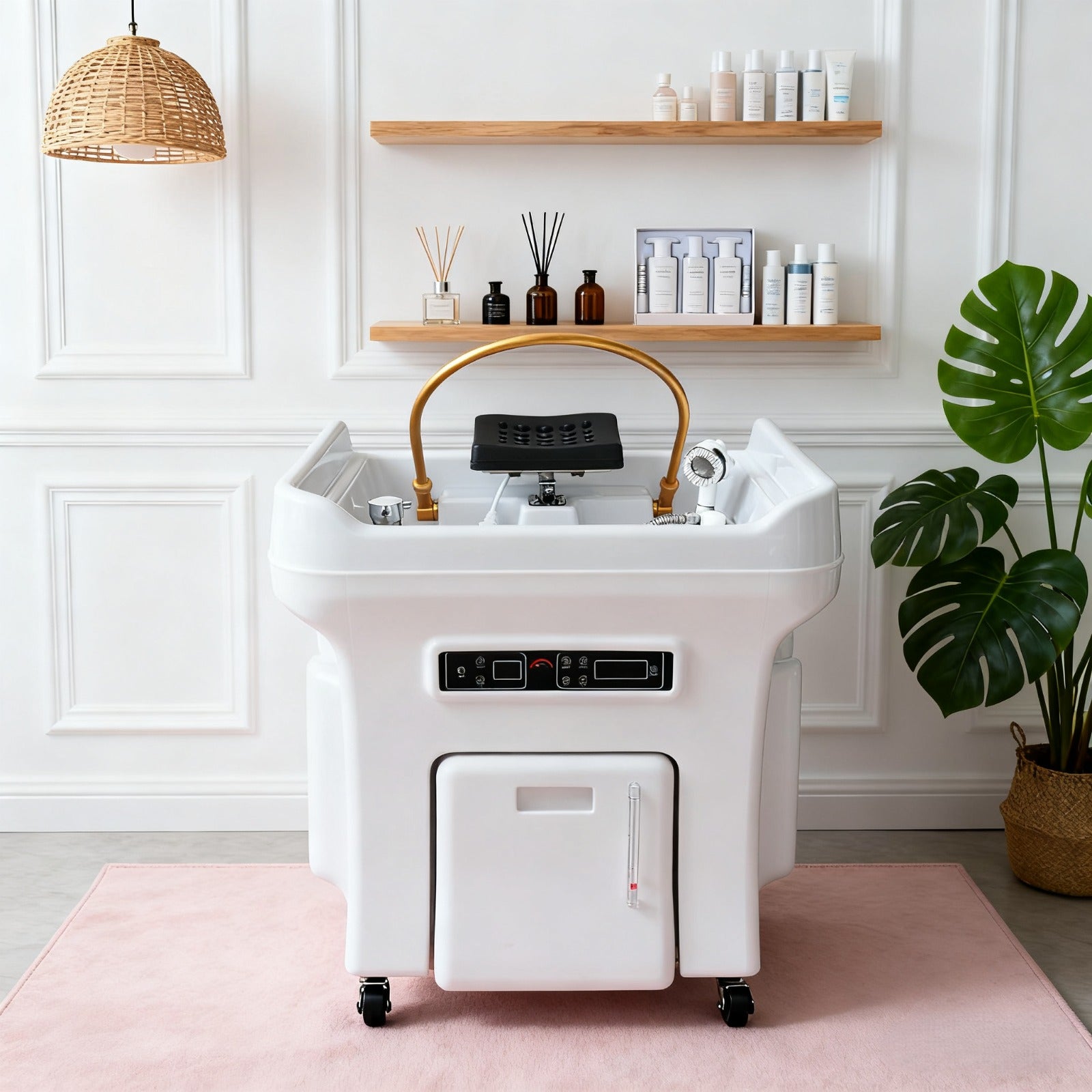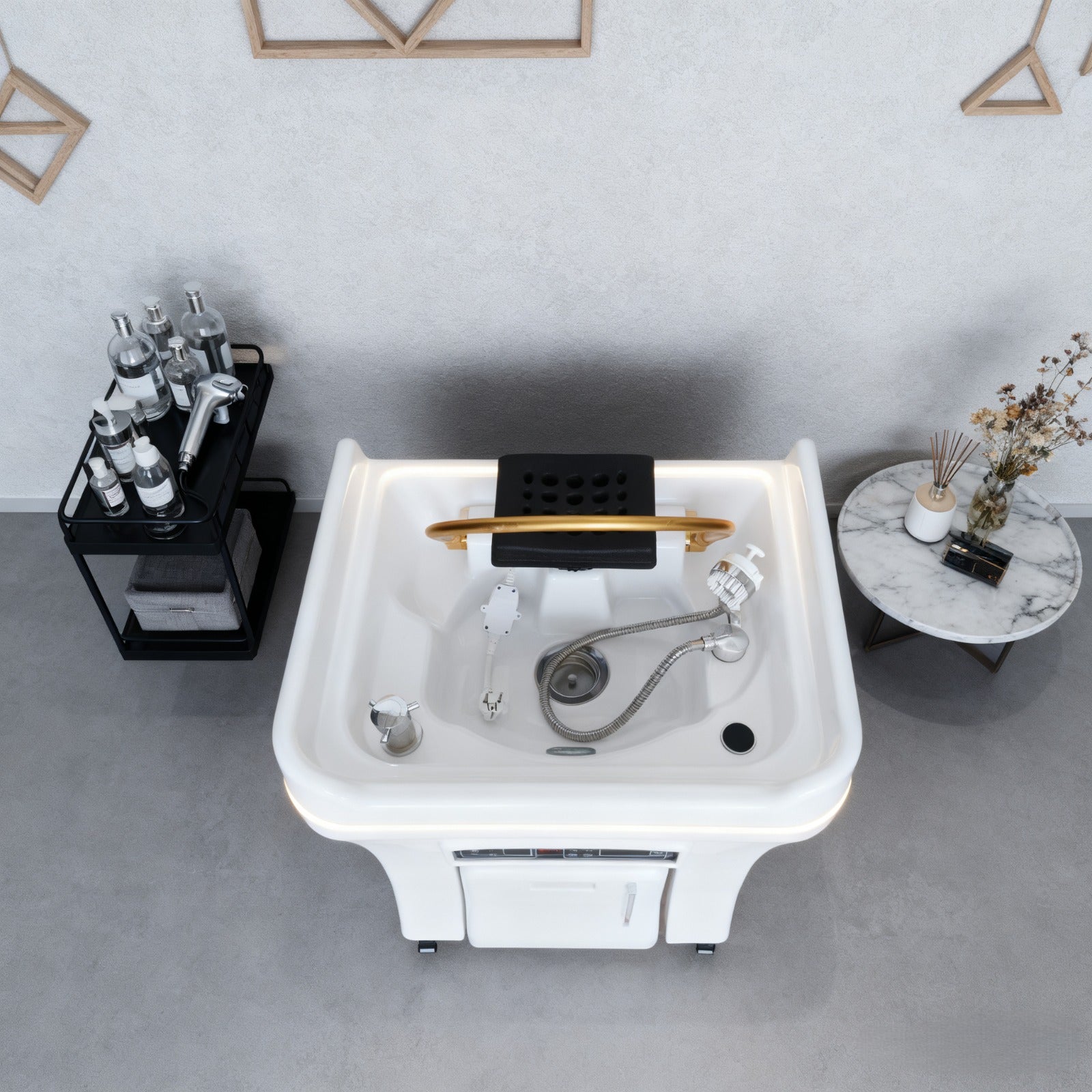 - Control panel to regulate the water temperature in the sink (heating and filtering water pump). This allows a constant temperature to be maintained during treatment.
